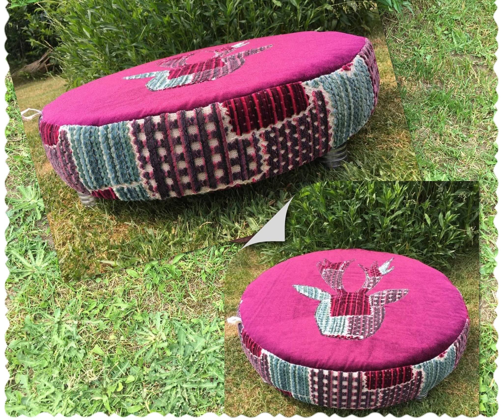 Speziell bei dieser Couch ist auch der Hirsch von mir selbst entworfen und genäht worden.